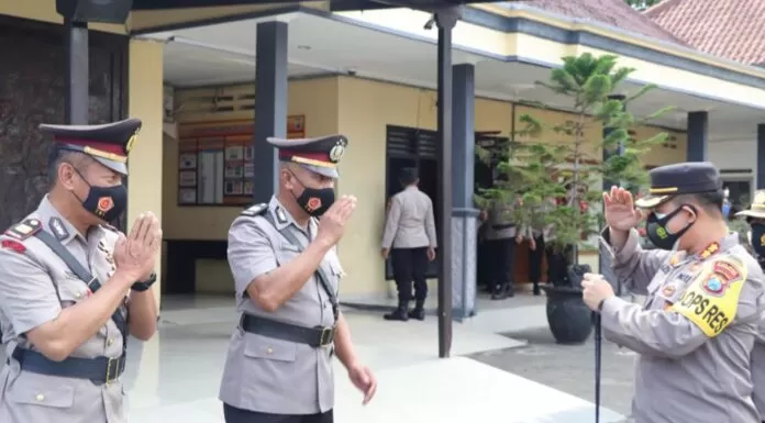Terkini.id, Ponorogo - Kapolres AKBP Mochamad Nur Azis memimpin Upacara Serah Terima Jabatan atau Sertijab Kasat Binmas Polres Ponorogo yang bertempat di halaman Mapolres Ponorogo, Senin, 22 Maret 2021.