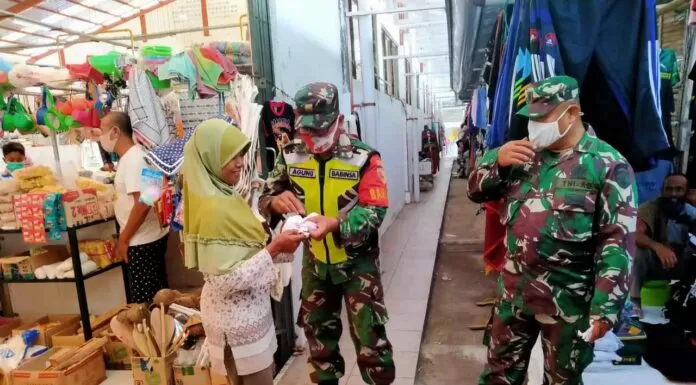 Terkini.id, Ponorogo - Agar masyarakat semua senantiasa menerapkan protokol kesehatan tentang 5M (memakai masker, mencuci tangan, menjaga jarak, menghindari kerumunan dan membatasi mobilitas), Kodim 0802/Ponorogo tidak henti - henti melakukan himbauan dan sosialisasi kepada masyarakat tentang pentingnya mematuhi himbauan pemerintah tentang disiplin protokol kesehatan pencegahan covid-19.