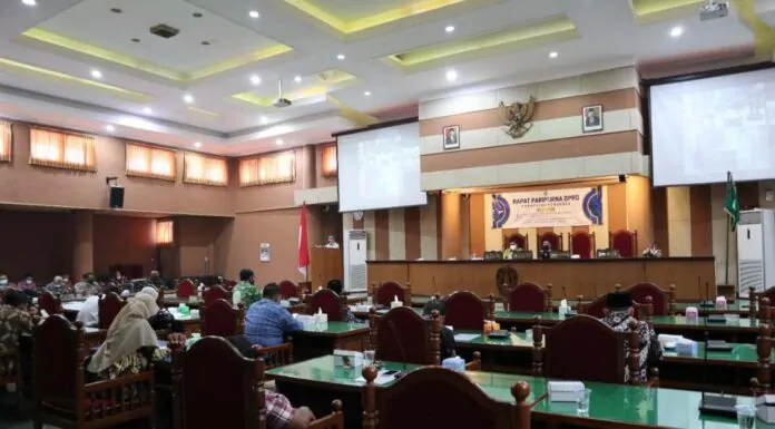 Terkini.id, Ponorogo - DPRD Kabupaten Ponorogo menggelar Rapat Paripurna dengan dua Agenda yaitu Penyampaian Bupati atas Raperda Pertanggungjawaban Pelaksanaan APBD Tahun Anggaran 2020 dan Usulan Pencabutan Raperda Pembentukan Kecamatan Kota Lama dan Kecamatan Sumberejo.