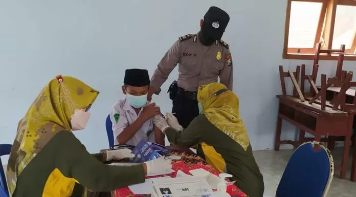Terkini.id, Ponorogo - Kegiatan serbuan vaksinasi terus berlangsung di wilayah Kabupaten Ponorogo. Vaksinasi bertempat di MTs Miftahul Ulum, Balong, Ponorogo, Senin 18 Oktober 2021 dan Gedung Sasana Praja, Jum'at 22 Oktober 2021. Vaksinasi ini menyasar pelajar dan masyarakat umum.
