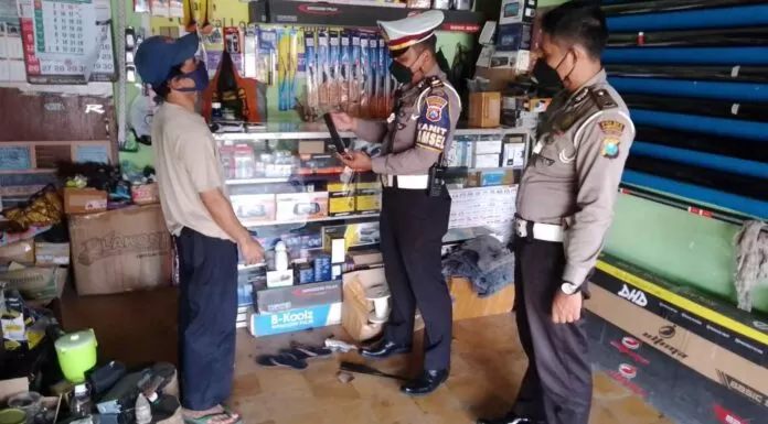 Terkini.id, Ponorogo - Satlantas Polres Ponorogo memberikan sosialisasi kepada sejumlah toko variasi kendaraan roda empat dan roda tiga di sekitar wilayah Kabupaten Ponorogo, Selasa 25 Januari 2022. Sosialisasi tersebut berupa larangan pemasangan strobo pada kendaraan umum roda empat (R4) dan roda dua (R2).