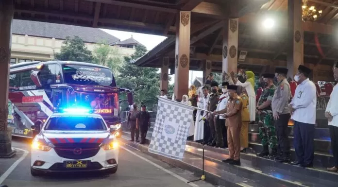 Terkini.id, Ponorogo - Kang Bupati Sugiri Sancoko memberangkatkan 194 calon jemaah haji (CJH) asal Kabupaten Ponorogo. Pelepasan CJH dilaksanakan di Pendopo Agung Kabupaten, Senin 6 Juni 2022, dan dihadiri oleh keluarga calon jemaah.